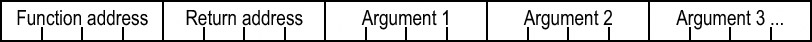 Armed with that knowledge, program execution can be directed into the system() function of libc. However, the goal here is to cause the vulnerable program to execute system("/bin/sh") to provide a shell, so an argument must be supplied. When returning into libc, the return address and function arguments are read off the stack in what should be a familiar format: the return address followed by the arguments. On the stack, the return-into-libc call should look something like this:
